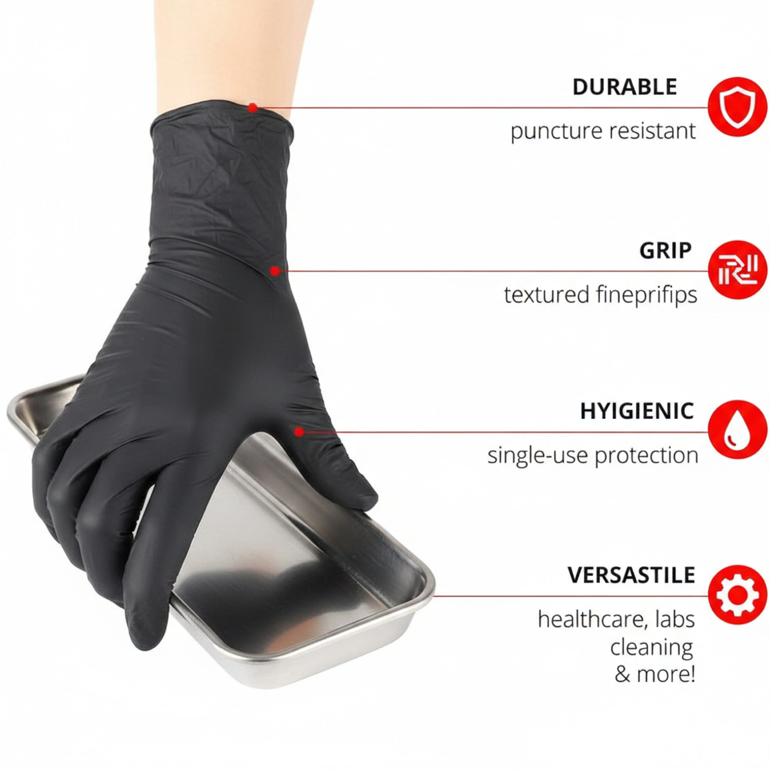 This makes them the “workhorse” of disposable PPE. In a professional setting, the sleek black color doesn’t just look professional; it serves a functional purpose by masking stains from grease, ink, blood, and dyes, allowing you to maintain a clean appearance in front of clients.