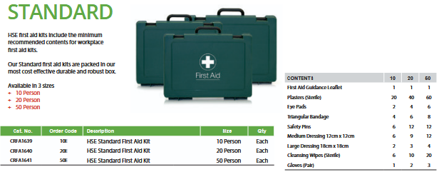 Every complete BS 8599-1 First Aid Kit Workplace Safety is available in Small, Medium, and Large sizes. This sizing is crucial, as the appropriate kit size is determined by the number of employees and the assessed risk level of the workplace (Low Risk vs. High Risk). For example, a low-risk office with 25-50 people requires one Medium kit, while a high-risk construction site with 5-25 people requires one Large kit, as clearly shown in the official guidance table.